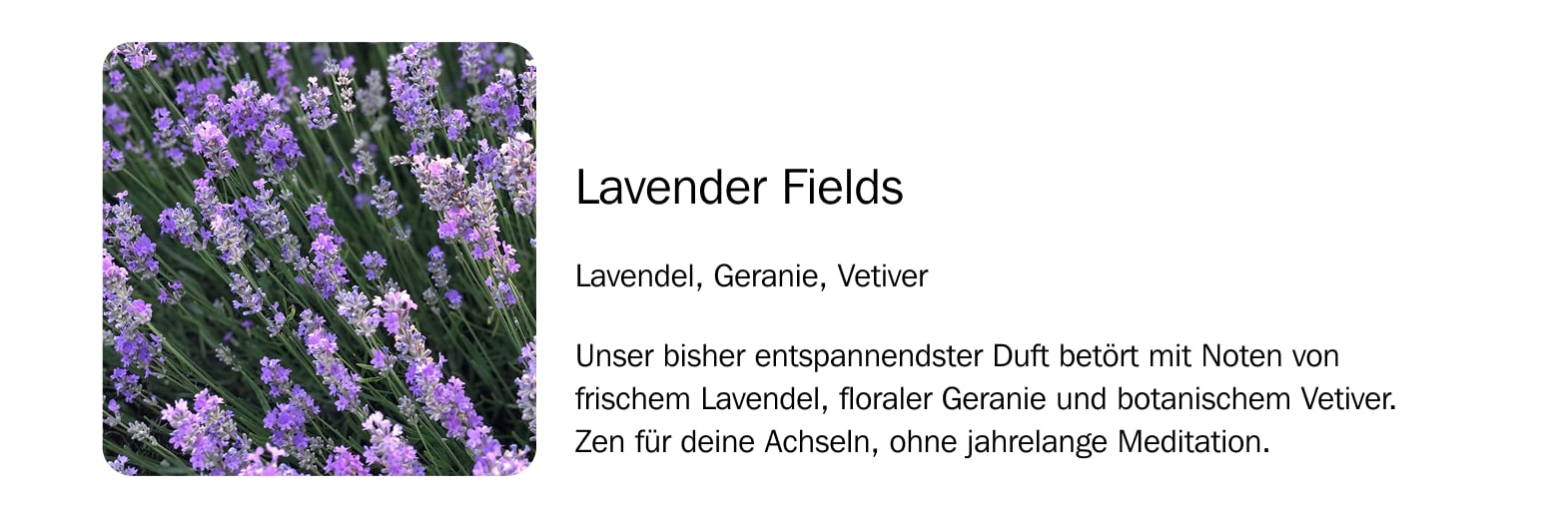 Wir benutzen eine Kombination aus synthetischen Düften und ätherischen Ölen für unsere wunderbaren Deos.